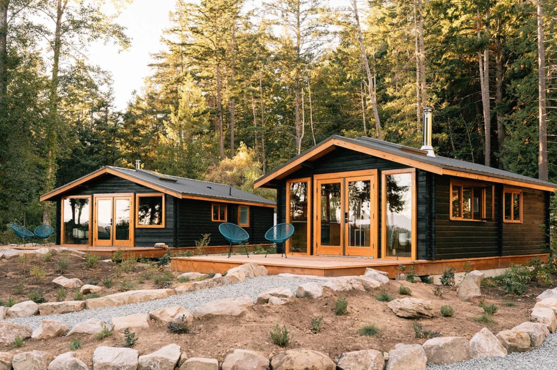 Beloved for destination weddings and unique getaways alike, Bodega is located on the north end of this stunning Gulf Island, and operates two separate properties just a 10-minute walk from each other. The newest, Bodega Cove, is an idyllic seaside retreat with modern one-bedroom cabins—think large skylights, designer Bocci lighting, and heated marble floors in the bathrooms—that are perfect for nature-loving couples. The original, Bodega Ridge, has seven self-contained log cabins for rent; these are better for families and each sleeps up to six guests. Dine on-site at the excellent counter-service restaurant, Nimma Nimma, and indulge in the rustic-elegance of this much-loved property.
